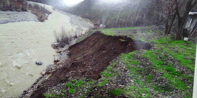 DİYARBAKIR - Yağış ve kar sularının erimesiyle birlikte dereler taşarken, bir çok noktada oluşan sel arazi ile birlikte meyve bahçelerini kullanılmaz hale getirdi. Yağış ve kar suyunun erimesiyle birlikte Kulp Çayı'nın taştığını belirten Alaca köyü sakinlerinden Behçet Tutuş, “Kulp ilçesine bağlı Alaca köyü Bılur Deresi küme evleri mevkiinde ikamet etmekteyiz. Kaldığımız yerleşim yerinde taşınmazlarımız ile evlerimiz bulunmaktadır. Geçimlerimizi tarım ve hayvancılık yaparak sağlamaktayız, evlerimizin bulunduğu yer ile taşınmazlarımızın bulunduğu yer Kulp Çayı kenarındadır. Birkaç gündür devam eden aşırı yağışlardan ve köyümüzün yüksek dağlarından eriyen karlardan dolayı, Kulp Çayı'nda sular yükselerek sele dönüştü. Oluşan sel önüne ne çıktıysa sürükleyerek götürüyor. Benim ile bazı köylülerimin tapulu arazileri ve meyve bahçeleri sular altında kaldı, hiç bir şeyimiz kalmadı. Sadece benim yaklaşık tapulu 10 dönüm arazim vardı ve bu arazimin içinde 5 dönüme yakın olan kısımda karışık meyve bahçem vardı. Bu bahçede 150 adet ceviz ağacı, 150 adet ise kaysı, armut, şeftali, erik, kiraz ve benzeri meyve ağaçlarım vardı. 20 kök üzüm asma ağaçlarım 5 adet dut ağaçlarım bu derenin yönünü değişmesiyle sulara gömüldü ve daha sonra sel suları bunları 10 dönümlük arazimle kullanılmaz hale getirdi. Yetkililerin bölgede inceleme yaparak mağduriyetimizin giderilmesini istiyoruz" dedi.