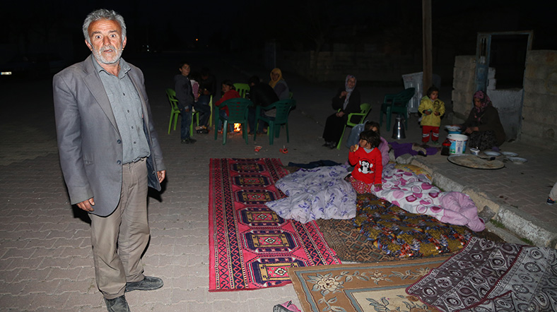 Mahmut Aydın’ın sekiz çocuğu ve 16 torunu aynı mahallede dört evde kalıyorlar. Onlar da geceyi sokakta geçirenlerden.