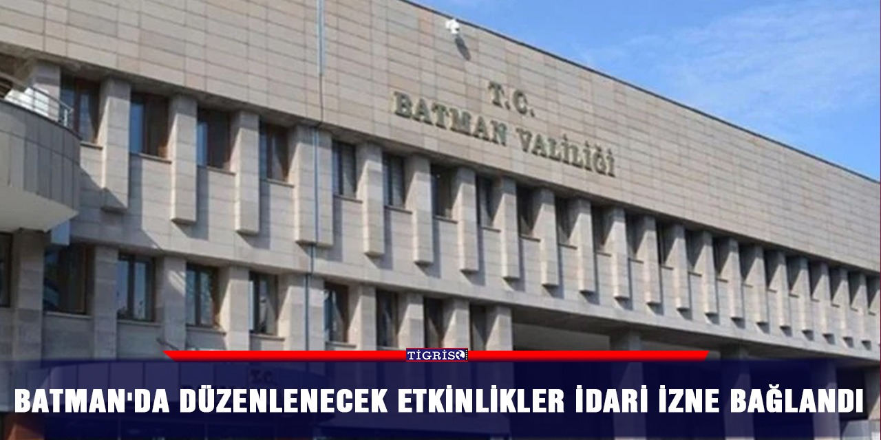 TİGRİS HABER - Valilikten yapılan açıklamada, kamu düzeni ve güvenliğinin korunması, suç işlenmesinin önlenmesi, temel hak ve özgürlükler ile başkalarının hak ve özgürlüklerinin ve genel asayişin korunması ile şiddet olaylarının yaygınlaşmasının önlenmesi amacıyla 'Batman il merkezinde ve tüm ilçelerinde her türlü eylem ve etkinliklerin 19 Ağustos'a kadar izne bağlandığı' belirtildi.