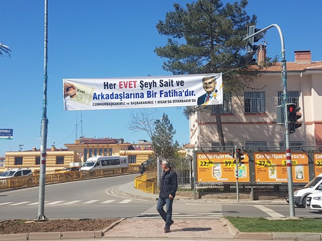 AK Parti Diyarbakır İl Başkanlığı, Cumhurbaşkanı Recep Tayyip Erdoğan ve Başbakan Binali Yıldırım'ın 1 Nisan'daki Diyarbakır ziyareti öncesi kentin birçok noktasında afişler astı. Asılan afişler arasında 'Her Evet Şeyh Said ve Arkadaşlarına Bir Fatiha'dır' yazılı pankart ise kentte büyük tepkilere neden oldu. Vatandaşların ve siyasilerin yoğun tepkisi üzerine 2 gün asılı kalan afiş dün görevliler tarafından kaldırıldı. Pankartın yerine, üzerinde 'Bize tuzak kuranların, şer odakları ile iş tutanların oyunlarını bozmak için EVET' yazılı bir başka pankartın asıldığı görüldü.