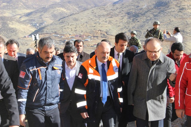 Çalışma ve Sosyal Güvenlik Bakanı Mehmet Müezzinoğlu, 16 işçinin göçük altında kaldığı, 6’sının cesedine ulaşıldığı, 10 işçi için kurtarma çalışmalarının sürdüğü Şirvan ilçesine bağlı Maden köyündeki bakır madenine geldi. Batman’dan helikopterle bölgeye gelen Müezzinoğlu’na, AK Parti Genel Başkan Yardımcısı Yasin Aktay ve Siirt Valisi Mustafa Tutulmaz eşlik etti. Müezzinoğlu, AFAD’ın koordinasyon TIR’ın da yetkililerden brifing aldıktan sonra, kurtarma çalışmalarının sürdüğü alana giderek, incelemelerde bulundu.