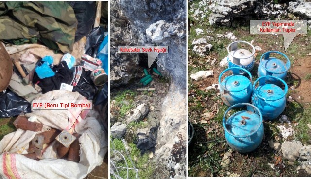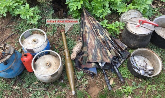 Açıklamada, sığınaklardaki yaşam ve giyim malzemeleri, 2 el yapımı patlayıcı düzeneği, 16 el yapımı patlayıcı yapımı için hazırlanan boş boru, 25 kilogramlık 6 sodyum klorat, 14 mutfak tüpü ve 200 metre elektrik kablosunun yerinde imha edildiği ve operasyonla ilgili adli işlemlerin sürdüğü bildirildi.(aa)