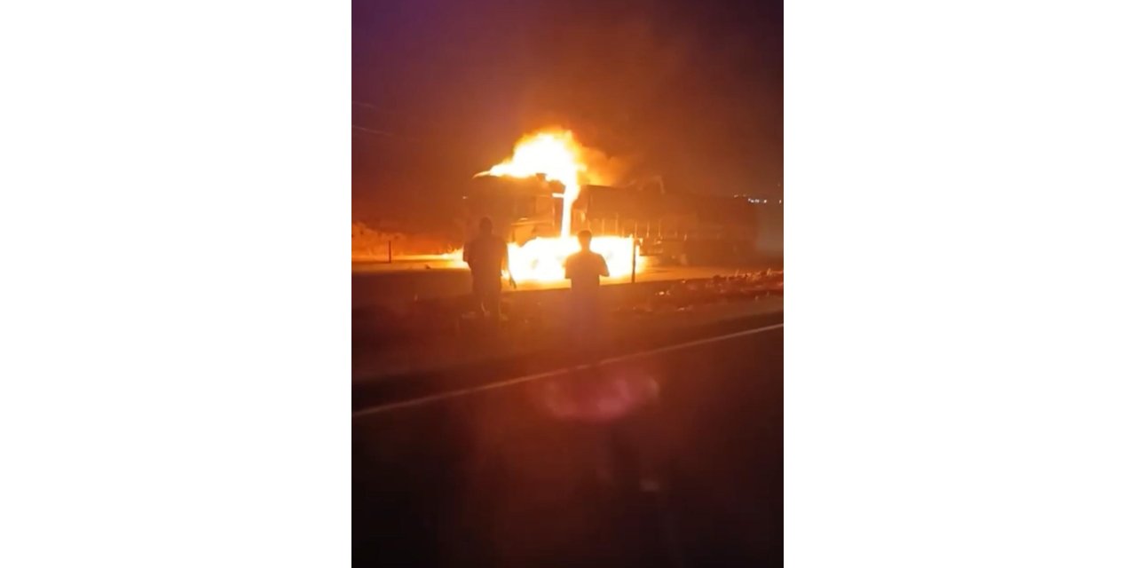 Seyir halindeki tır alev aldı