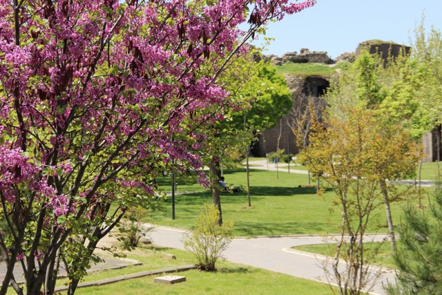 Diyarbakır simgesi tarihi Surlar, baharın gelişiyle birlikte çiçeklerle renklendi. Vatandaşlar tarihin ve yeşilin buluştuğu parklarda güneşin tadını çıkardı.