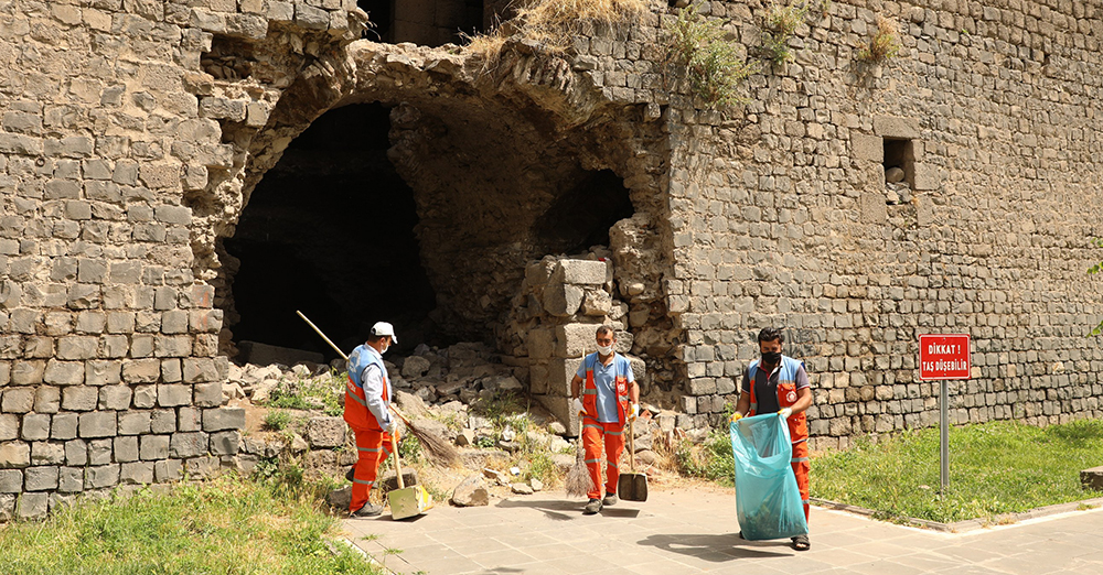 Diyarbakır Büyükşehir Belediyesi, Sur ilçesini çevreleyen sur dipleri ve burçlarda temizlik çalışması başlattı.