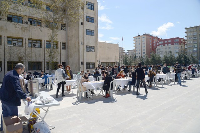 Diyarbakır Büyükşehir Belediyesi’nin kadın çalışanları ile kadın meclis üyelerinin oluşturduğu Kadın Meclisi, Suriçi’nde sokağa çıkma yasağı ve çatışmalar nedeniyle evlerini terk etmek zorunda kalan aileler için ikinci dayanışma yemeği düzenledi. Büyükşehir Belediyesi’nin yanındaki Çok Katlı Otopark üzerinde düzenlenen ikinci dayanışma yemeğinde, kadın meclis üyeleri ve kadın personellerin evlerinde hazırladıkları yöresel yemek ve tatlılar satışa sunuldu. Büyükşehir Belediyesi çalışanlarının yanı sıra çevrede bulunan kamu kurumu çalışanlarının da yoğun ilgi gösterdiği yemekler kısa sürede tüketildi. İki gün sürecek olan dayanışma yemeğinden elde edilecek gelirle evlerini terk etmek zorunda kalan ailelere buzdolabı alınacak.