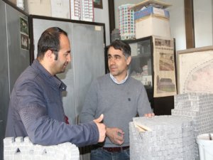 Suriçi’nin maketinde kullanılan kalker taşının Lice ve Urfa Bilecik’ten tedarik edildiğini belirten Gündoğar, “Kalker taşının rengi beyaz, Diyarbakır’da tarihi alanlarda ise bazalt taşı kullanılıyor. Bazaltın rengi siyah olduğu için ben kalker taşını oyduktan sonra yağlı boyayı incelterek boyatıyorum. Bu işlemlerden sonra kalker taşı bazalt taşına benziyor” dedi.