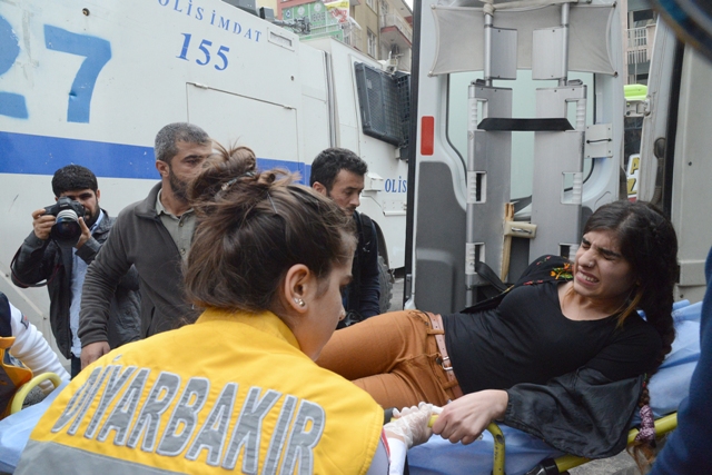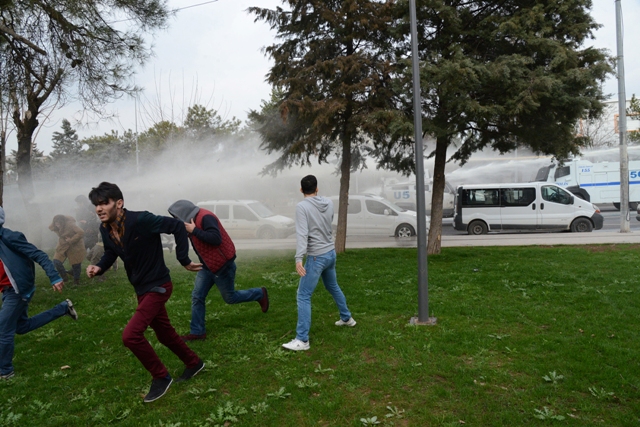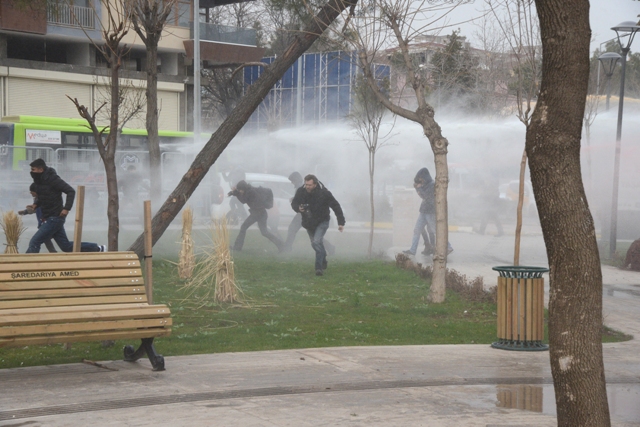 Diyarbakır'da operasyonların devam ettiği Sur İlçesine izinsiz yürümek isteyen gruba polis, gaz bombası ve tazyikli su ile müdahalede bulundu.