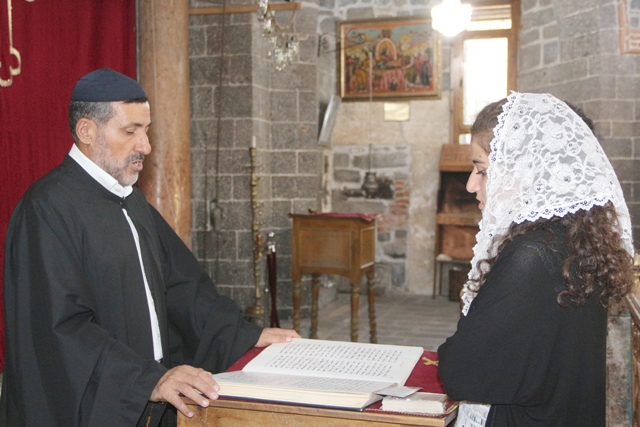 Diyarbakırlı Emeniler Meryem Ana Yortusu (Astvatsadizn), Üzüm Kutsama Bayramını dün kutladılar. Surp Giragos Ermeni Kilisesinin Surdaki çatışmalardan dolayı zarar görmesi ve ibadete kapalı olması nedeniyle Diyarbakır’daki Ermeniler Üzüm kutsama bayramını Süryani Kadim Ortodoks Meryem Ana Kilisesinde kutladılar.