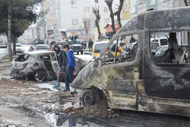 Diyarbakır’da dün akşam bir grup silahlı göstericinin yolları trafiğe kapatmak istemesi üzerine başlayan operasyonlar ve çatışmalar, başta merkez Bağlar ilçesi olmak üzere kentin bazı noktalarında sabaha kadar sürdü. Çatışmalarda 1 polis memuru şehit olurken, 3 PKK üyesinin yaşamını yitirdiği belirtildi. Bağlar’ın yanı sıra merkez Yenişehir ve Kayapınar ilçelerinde de sık sık silah ve patlama sesleri duyulurken, Bağlar ilçesine bağlı bazı cadde ve mahallerde sokağa çıkma yasağı getirildi. Yaşanan çatışmalarla birlikte halk yine yollara düştü. Göç edenler arasında 3 ay önce Sur’daki çatışmalardan kaçıp gelen ailelerde bulunuyor. Çaresiz bir şekilde ortada kalan vatandaşlardan kimi akrabalarının evine, kimi köylerine kimi de çadır hayatına döneceğini söyledi.