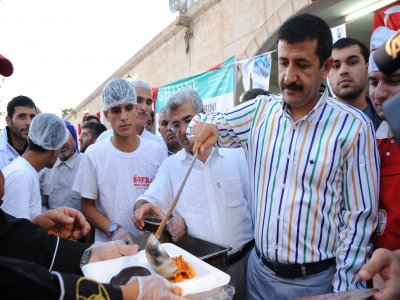 "Bizim soframızın ayrı bir özelliği var. Çünkü şehrimizdeki 300 bine yakın sığınmacının yarısı kendi imkanlarıyla kiraladıkları evlerde yaşıyor. Bu insanların çoğu yardıma muhtaç. Ramazan vesilesiyle kurduğumuz iftar sofralarında çok şükür Halil İbrahim bereketi var. Buraya gelen misafirlerimiz oruçlarını huzur içinde açıyor."