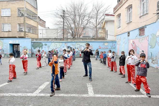 Aileleri ikna edilen İsmet Paşa ve Ziya Gökalp ilkokulları ile Tevfik Fikret ve İnönü ortaokullarında okuyan 70 çocuk, İsmet Paşa İlköğretim Okulu'nda her gün, gruplar halinde 6 saat, haftada toplam 30 saat kick boks eğitimi alıyor.