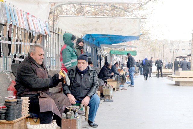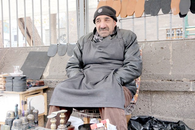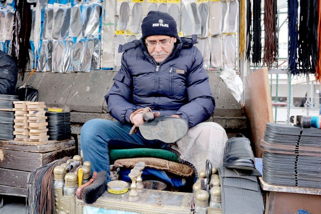 Mehmet Yılmaz, “ 35 sene oldu buradayım. Bir günde üç beş ayakkabı boyamakla geçim mi olur? 10 çocuğum var, 3’ü evde işsiz. Hepsi de askerliğini yapmış ama işsizler evde yatıyorlar. Emekliyim ama yine de bu soğukta buraya gelip çalışmak zorundayım. Evim yok, kiradayım, çalışmaya mecburum. Ayakkabı boyası, ayakkabı tamiri artık günlük ne iş çıkarsa yapıyorum.”