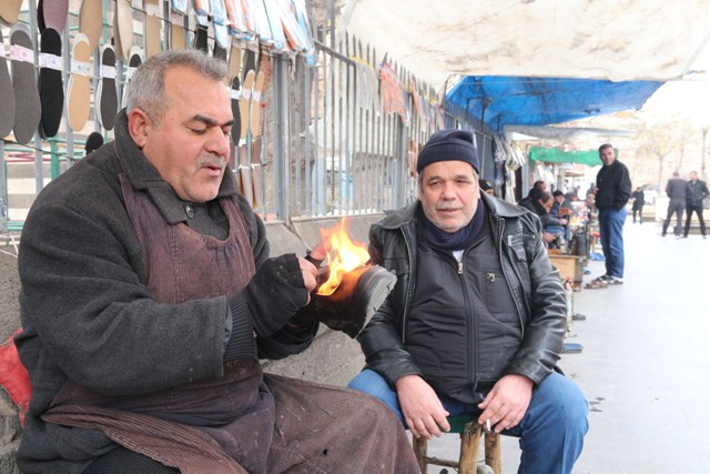 Mahmut amca, “34 yıldır burada bu işi yapıyorum. 7 çocuğum var, buradan kazandığım 30 40 TL ile geçinmeye çalışıyoruz. Kış geldi havalar soğudu, ayakkabı sandığı önünde ateş yakıp ısınmaya çalışıyorum. Tansiyon hastasıyım, bu soğukta akşama kadar burada oturup iş yapmak kolay değil.”