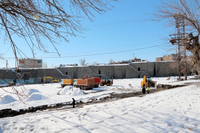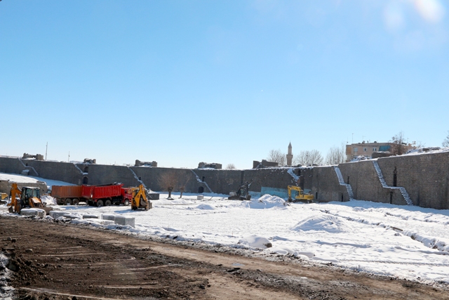 TOKİ tarafından Sur’un ihyası kapsamında yapımına başlanılan “Peyzaj Düzenlemesi ve Rekreasyon Projesi” çalışmaları karakışa takılırken, muhtemelen havaların ısınmasıyla çalışmalar kaldığı yerden devam edecek.