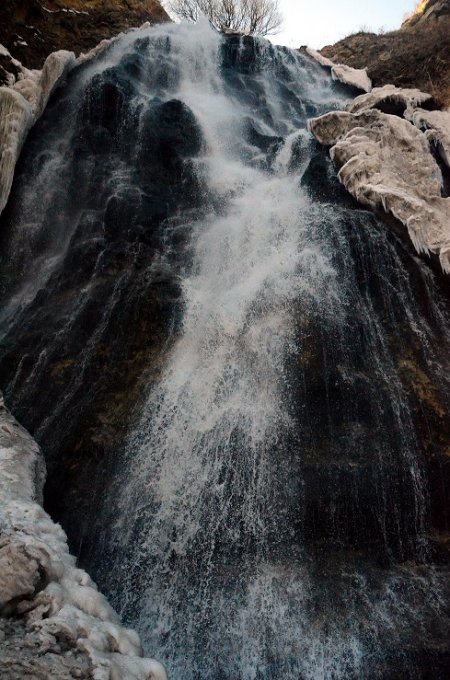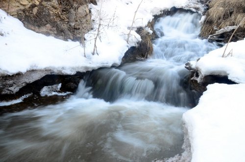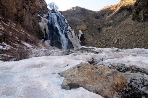 ''Su Uçan Şelalesi'' olarak da anılan şelalenin etrafında kalan buz sarkıtları güzel görüntüler oluşturdu.