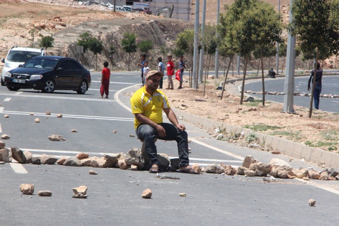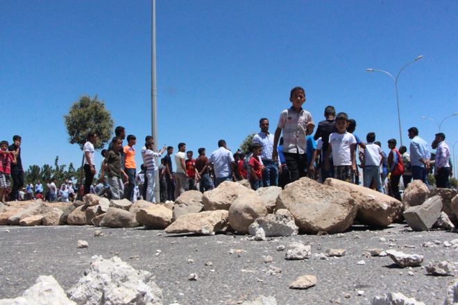 ŞANLIURFA'da, taziye evi yapılmasını isteyen mahalle sakinleri, taşlarla kapattığı yolda eylem yaptı.