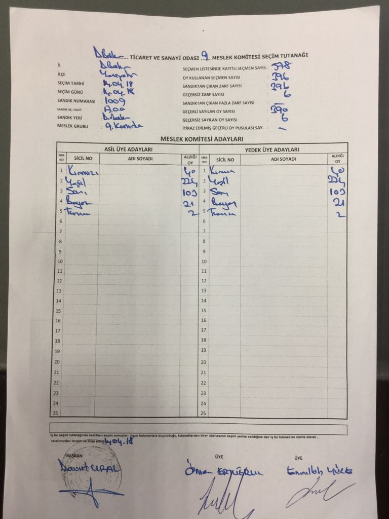 İşte seçim sonucunda ortaya çıkan sonuç tablosu