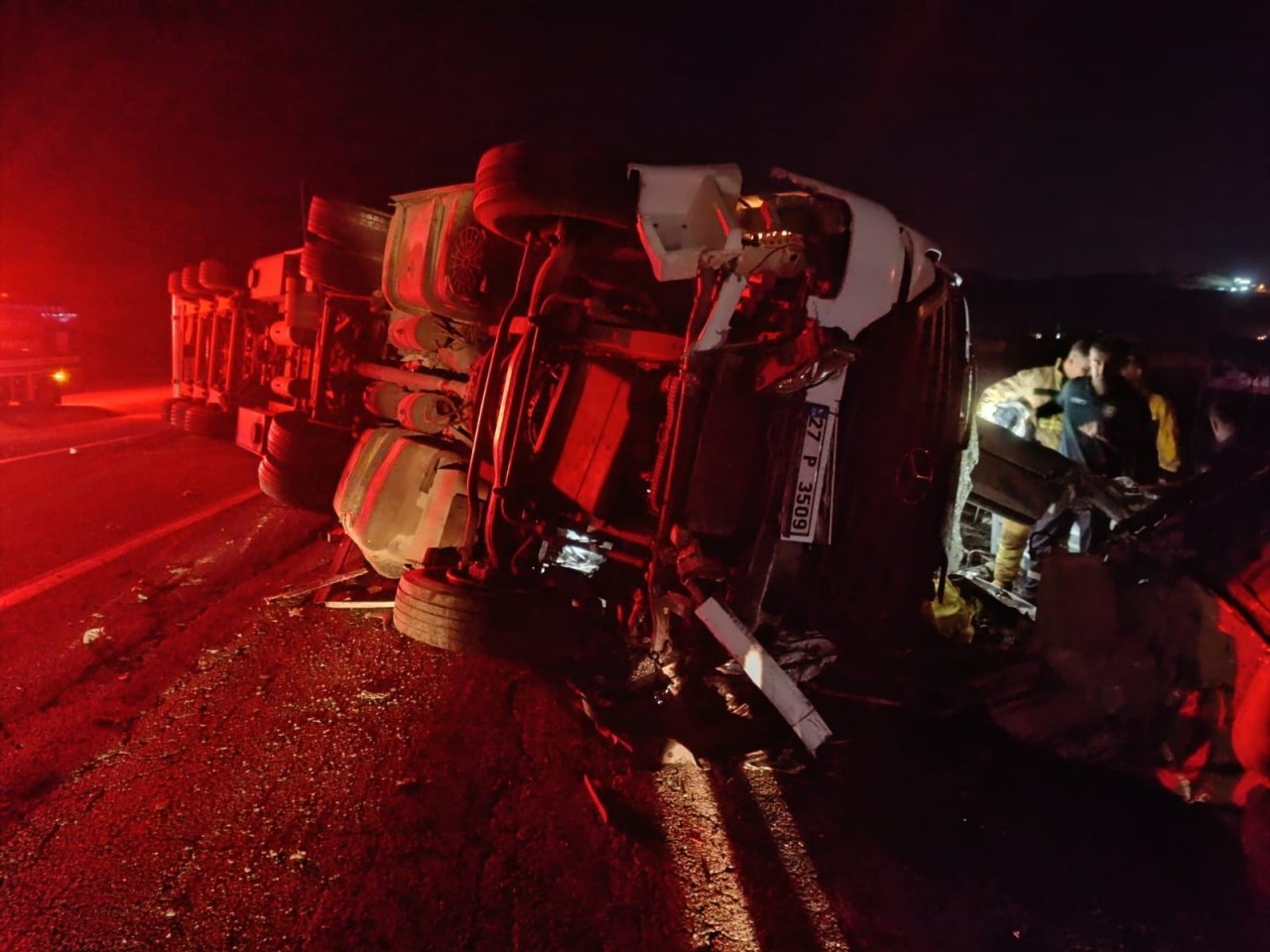 TİGRİS HABER -Edinilen bilgilere göre, Cizre-Nusaybin karayolunun 10. kilometresi Çavuş köyü mevkiinde Berham Kurt yönetimindeki 27 P 3509 plakalı kalas yüklü tır devrildi.