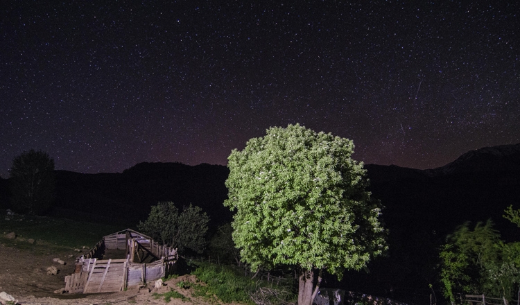 Tunceli'nin Ovacık ilçesinde gece karanlığında gökyüzü uzun pozlama tekniğiyle görüntülendi.