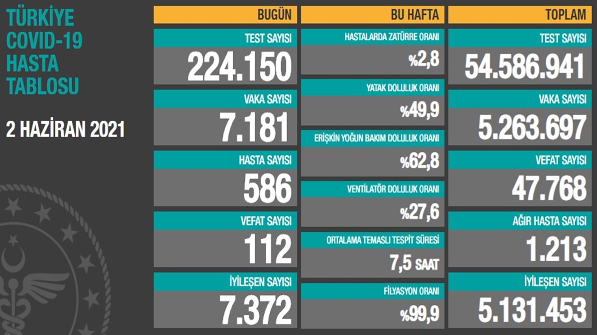 Sağlık Bakanlığı tarafından güncel koronavirüs verileri açıklandı. Son verilere göre son 24 saatte 112 kişi hayatını kaybetti, 7 bin 181 kişi koronavirüse yakalandı.