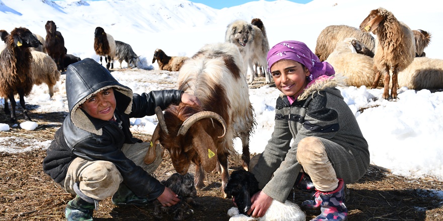 TİGRİSİ HABER - Şırnak’ın Beytüşşebap ilçesine bağlı Yeşilöz köyü Faraşin Yaylasında Aslan ailesi, yüzlerce hayvanı 10 ve 8 yaşındaki evin 'küçüklerine' teslim etti. 10 yaşındaki Axin ile 8 yaşındaki Berat Aslan, sabahın ilk ışıkları ile birlikte hayvanları alıp otlatmaya götürüyor. Aslan kardeşler, akşam saatlerine kadar koyun ve keçilere çobanlık yapıyor. Kurt sürülerine karşı sürekli hayvanların arasında dolaşan çocuklar, yeni doğum yapmış keçinin oğlaklarını soğuklardan korumak için ise saman yığınları içinde bekleterek süt içmelerine yardımcı oluyor.