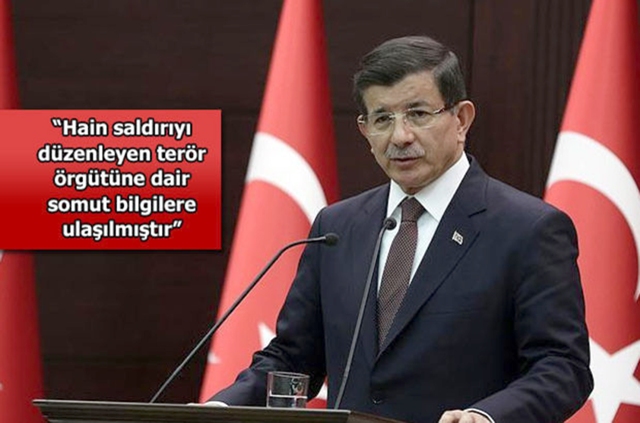 Davutoğlu, "Eldeki ilk verilere, saldırının gerçekleştiği mekânda elde edilen bulgulara ve yapılan istihbarat analizlerine dayanarak bu hain saldırıyı gerçekleştiren terör örgütüne dair somut bilgilere ulaşılmıştır" dedi.