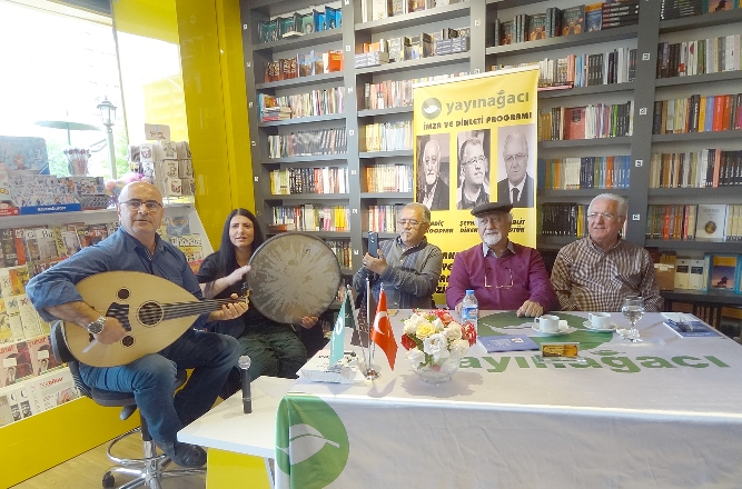 Biz Yayın Ağacı kitapevinde üç yazara, Mıgırdıç Margosyan, Şeyhmuz Diken, Halil Yörük ağbilerime müzik yapmaya geldim. Yayın Ağacı sahibi Yusuf’la konuştuk long play yapmak istiyorlar. Bestelerimden oluşan on üç şarkılık bir long play yapacağız. Bazılarını sözlerini de Şeyhmuz ağbi yazmıştı.