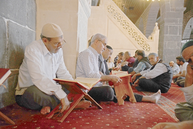 Diyarbakır’da bulunan ve İslam aleminin 5. Harem-i Şerifi olarak bilinen tarihi Ulu Camisine gelen vatandaşlar Ramazan ayı nedeniyle burada Kuran-ı Kerim okuyarak hatim indiriyorlar.