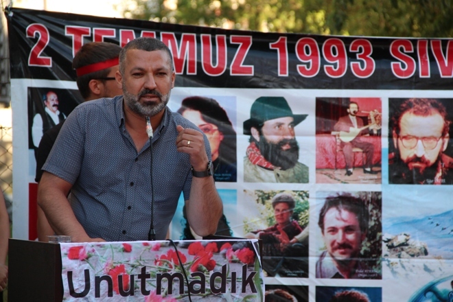 Sivas Madımak katliamının 25'inci yıldönümünde yapılan anmada konuşan Pirsultan Abdal Kültür Dernekleri Diyarbakır Şubesi ve Cemevi Başkanı Cafer Koluman, "Kaygılıyız... Geleceğimiz için kaygılıyız, çocuklarımız için kaygılıyız, gençlerimiz için kaygılıyız ve kadınlarımız için kaygılıyız. " ifadelerini kullandı.