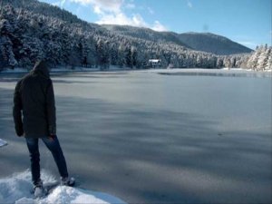 TRABZON Trabzon’un Çaykara ilçesine bağlı doğal güzellikleri ile dünyaca ünlü Uzungöl beldesi, üç günden beri yağan kar yağışının etkisi altında bulunuyor. Beldeye ismini veren doğa harikası Uzungöl'ün yüzeyi soğuklar nedeniyle tamamen donarken, beldede hava sıcaklığı eksi 5 derecelere kadar düştü. Uzungöl'ün yüzeyi tamamen donarak buz tutarken, bölgeye gelen turistler donan göl manzarası ile bol bol fotoğraf çektirdi. Yolların açık olması nedeniyle yerli ve yabancı turistler Uzungöl’e gelerek konaklama yaparken, Arap turistler yaz aylarında olduğu gibi kış aylarında da Uzungöl’ü mesken tuttukları gözlendi.