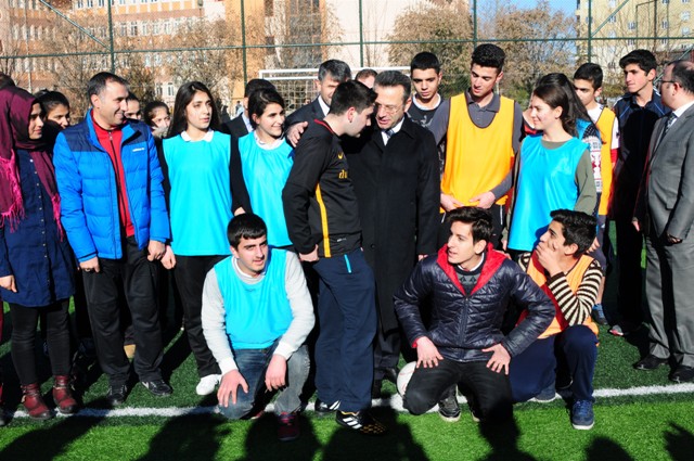 Diyarbakır Valisi Hüseyin Aksoy, Cazibe Merkezlerini Destekleme Programı kapsamında Kalkınma Bakanlığı tarafından finanse edilen ve Valilik tarafından yürütülen “Dezavantajlı Grupların Sosyal Entegrasyonu ve Rehabilitasyonu” projesi kapsamında, Yenişehir ilçesinde bulunan Sezai Karakoç Anadolu Lisesi içerisine yapılan halı saha ve voleybol sahasını gezerek incelemelerde bulundu.