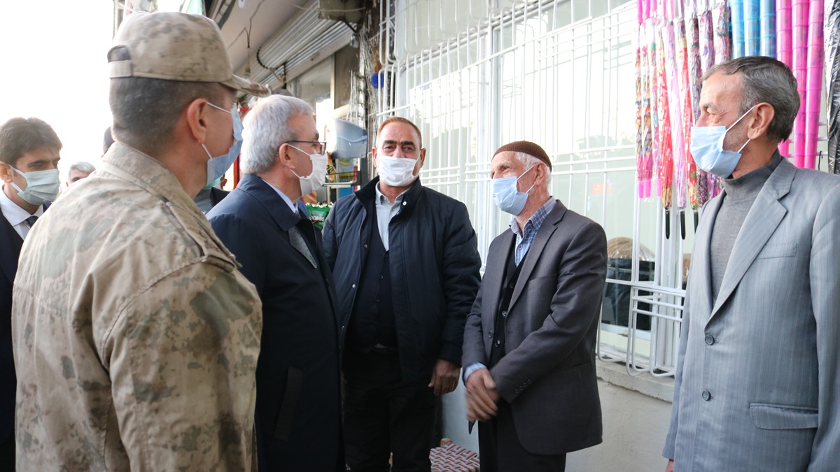 Toplantı sonrası ilçe esnafına da ziyaretlerde bulunan Vali Karaloğlu, vatandaşların sorunlarını ve taleplerini dinledi. (İHA)