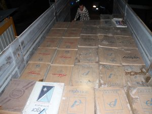 Van'ın Muradiye ilçesinde düzenlenen operasyonda bir kamyon dolusu kaçak sigara ele geçirildi.