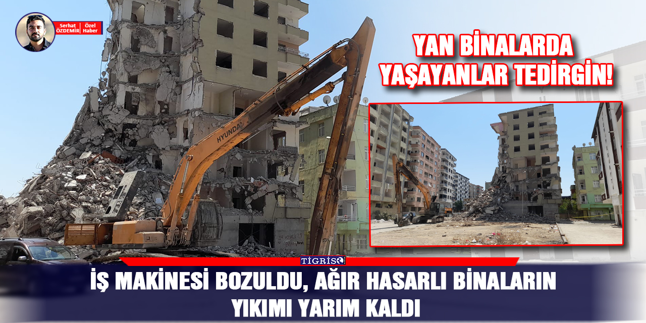 VİDEO - İş makinesi bozuldu, ağır hasarlı binaların yıkımı yarım kaldı