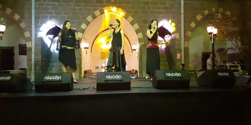 Kalabalık izleyicilerin doldurduğu Kervansaray’ın avlusunda sahneye ilk önce; Ünlü Kürt soprano Pervin Chakar çıktı. Sesiyle dinleyicileri adeta büyüleyen Pervin Chakar’dan sonra Ara Dinkjain uduyla, Ari Hegel gitarıyla, Ertan Tekin dudukla harika bir dinleti sundular.
