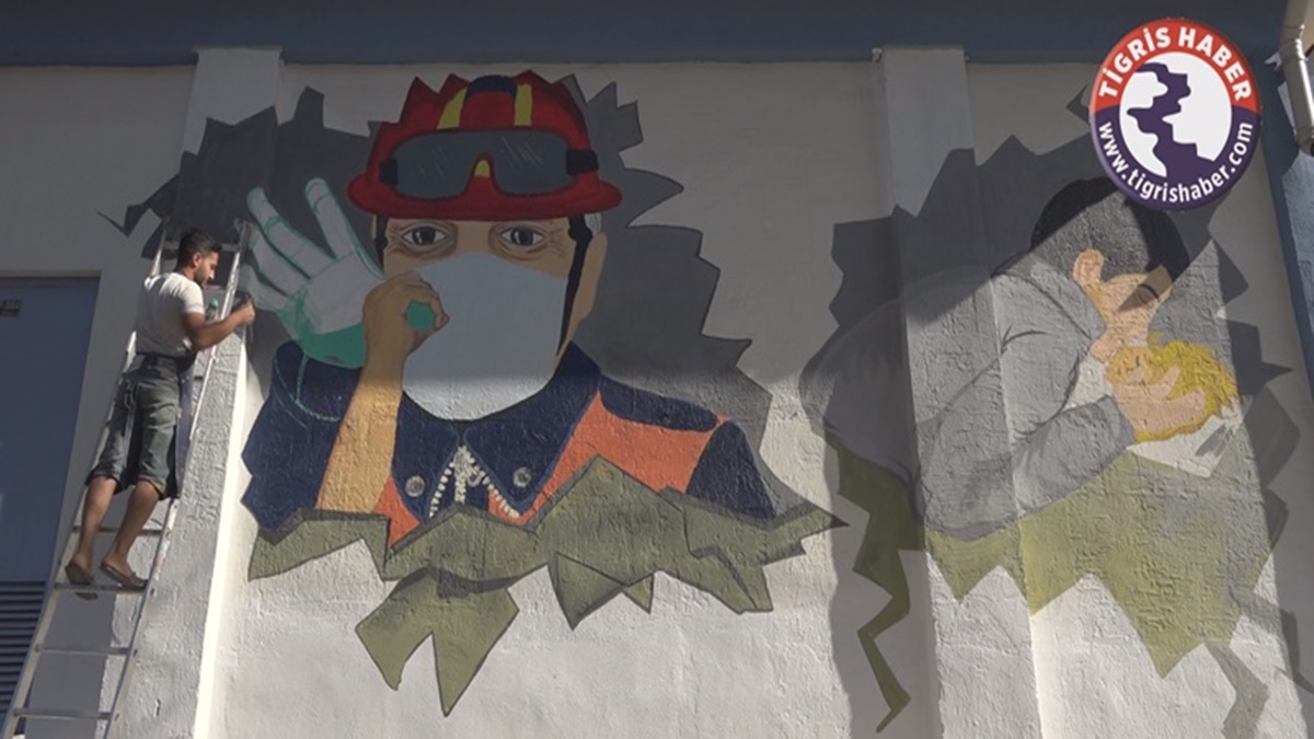 TİGRİS HABER - İzmir’de yaşanan depremin yaraları gün geçtikçe sarılmaya devam ederken, Kayapınar Belediyesi tarafından hayata geçirilen ‘Küçük Fırçalarla, büyük dokunuşlar’ adlı proje kapsamında Gaziler semtinde bulunan Elektrik trafosuna İzmir’de yaşanan depremde enkaz altında kurtarılan Ayda’nın ve İtfaiye ekiplerinin resimleri çizildi. Novruz Ahmadov, Emre Aydın ve Yunus Emre Aslan tarafından çizilen resimler vatandaşlar tarafından da büyük beğeni kazanırken, yürütülen proje ile ‘Acılar ortaktır’ mesajı verilmek isteniyor.