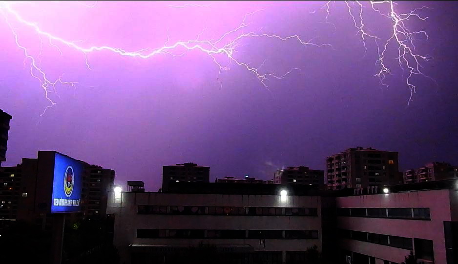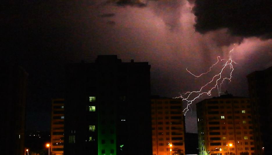 Dün gece saat 24.00 sıralarında kentin üzerini aniden kaplayan karabulutlar ve ardından başlayan yoğun gök gürültüsüyle birlikte peş peşe şimşekler çaktı.