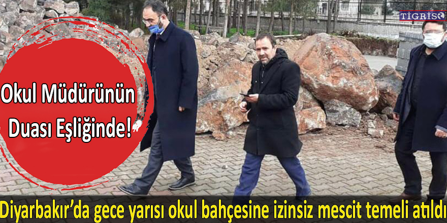 TİGRİS HABER - Kayapınar ilçesindeki Şehit Halis Gülser Kız Anadolu İmam Hatip Lisesi’nin müdürü Zekeriya Erdem’in gece saatlerinde okulun bahçesinde ellerini açıp dua ederek temel atma törenini gerçekleştirdiğine dair görüntüler ortaya çıktı. Okul bahçesinde yaptırılmak istenen uygulama mescidinin temelinin neden gündüz değil, gece saatlerinde atıldığı tartışılırken, Milli Eğitim Müdürlüğü ile Kayapınar ilçe Belediyesinin olaydan haberdar olmadığı ortaya çıktı.