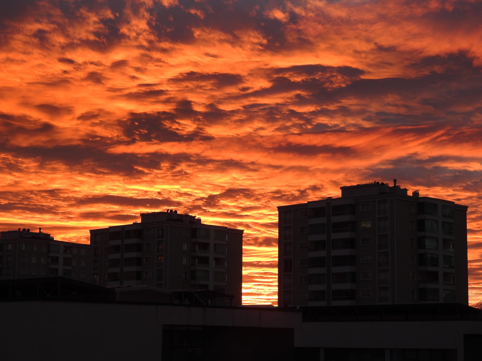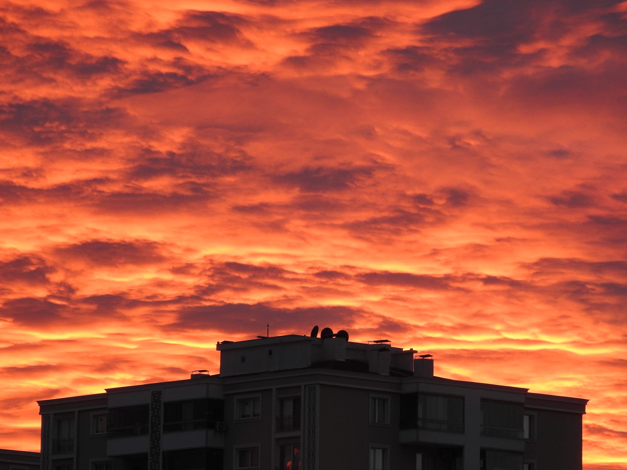 Dün akşam Gün batımında gökyüzünde yine aniden karabulutlar toplandı.