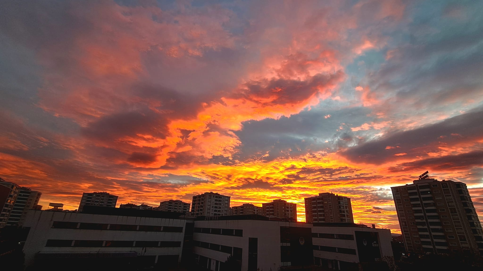 Güneş ufukta iyice alçalmaya başlarken ise, gökyüzü adeta usta bir ressamın elinden çıkmış muhteşem bir tabloya dönüştü.