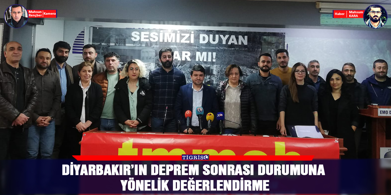 TİGRİS HABER - TMMOB Diyarbakır İl Koordinasyon Kurulu (İKK), Maraş merkezli deprem sonrası Diyarbakır'daki yapılarda bulunan hasar durumu, kentsel dönüşüm ihtiyacı ve yapılacak yeni konutların yerlerine dair Elektrik Mühendisleri Odası'nda basın açıklaması yaptı.