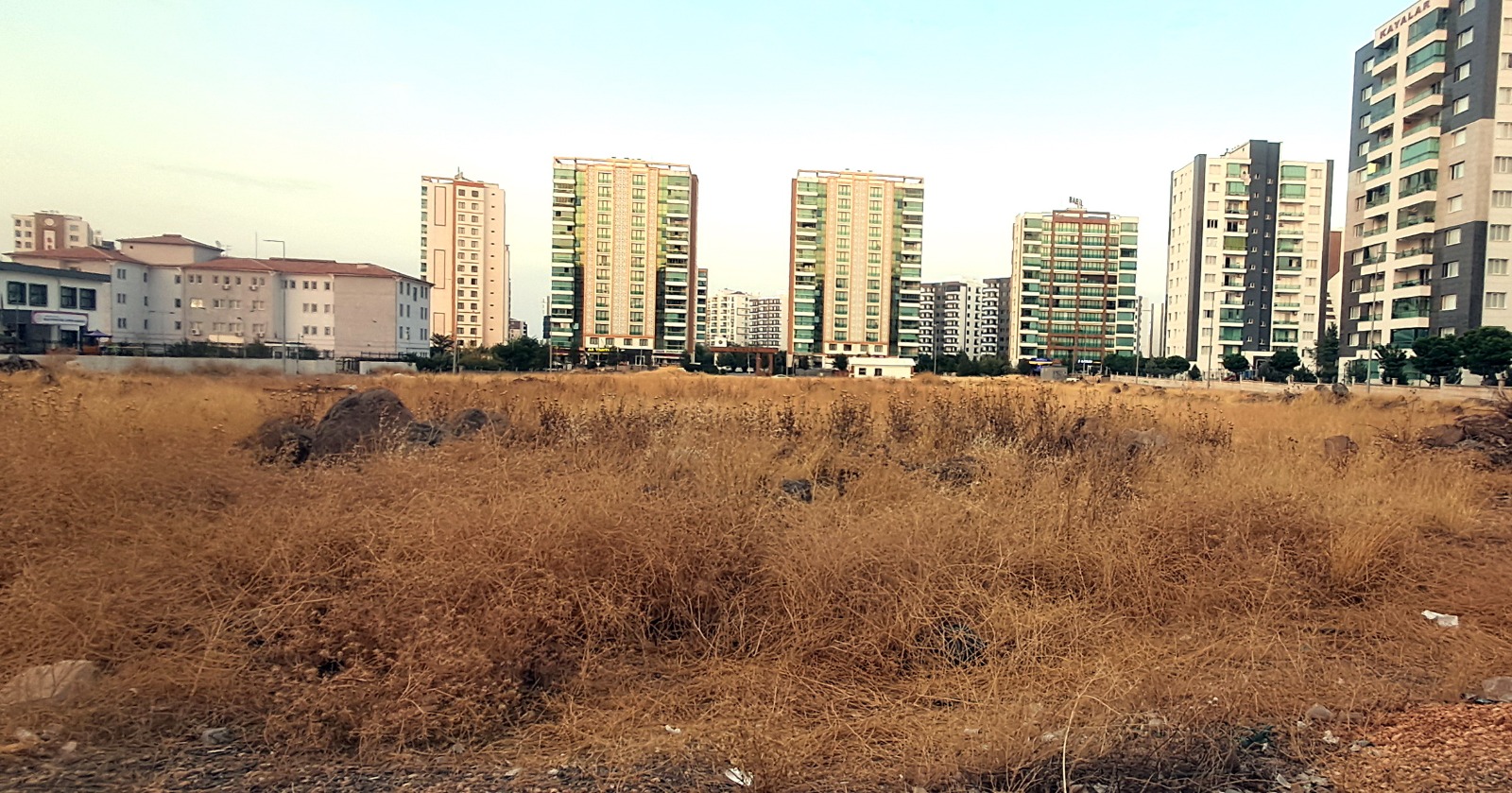 Kavşaktan 635.sokağa girişinde yer alan boş arazi kurumuş yabani otlarla sarılmış durumda. Aynı yoldan biraz ileri gittiğinizde diğer arazide aynı durumda.