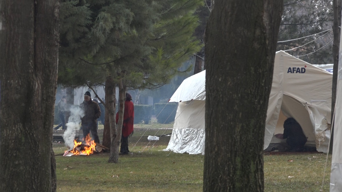 Geceyi 15 kişiyle birlikte çadırda geçirmek zorunda kaldıklarını belirten Arife Taş, “Dün gece bizim için çok zor geçti. Bir birimize sarılarak ısınmaya çalıştık. Battaniye yok ve soba yok. Isınmak için korkuyla eve gidip battaniye alıp geldik. Bizim ısınmaya ihtiyacımız var” dedi.