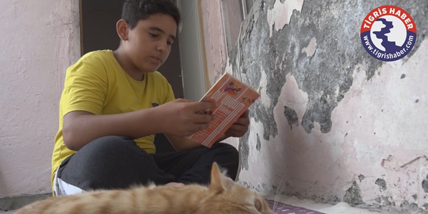 TİGRİS HABER - Bağlar İlçesi Muradiye Mahallesi 194. sokakta ikamet eden Arda Kaygaç henüz 13 yaşında. 8. Sınıf öğrencisi olan Arda’nın babası doğuştan engelli, annesi ise hiç okula gitmemiş. Tek odalı evde kendini hayata hazırlayan Arda, boş zamanlarında ya kitap okuyor ya da, evde sırdaşı olan kedisiyle oyun oynuyor. Hayrettin ve Hamdiye çiftinin tek oğlu olan Arda, yıkık dökük evlerinde kitap okuyarak zaman geçiriyor. Anne ve babasının hiçbir geliri olmayan ve 6 aydır kiralarını dahi ödemeyen Arda’nın ailesi, geçimlerini komşularının yardımı ile yapıyor.