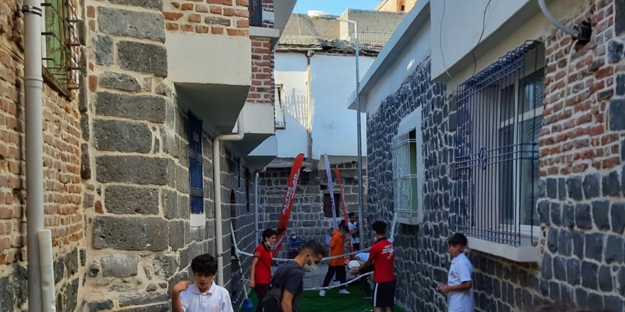 TİGRİS HABER - Diyarbakır’ın Sur İlçesi’nde Abdal Dede Mahallesinde bulunan Göksel sokağın dış cephesi bütün sokaklara örnek olabilecek güzelliğe sahip. Sokakta ikamet eden çocuklar başka sokaklara gitmek yerine günlerinin büyük bir bölümünü bu sokakta oyun oynayarak geçirirken, Gençlik Spor Diyarbakır İl Müdürlüğü tarafından ‘Altın Ayaklar Yarışıyor’ projesi bu sokakta yürütüldü.