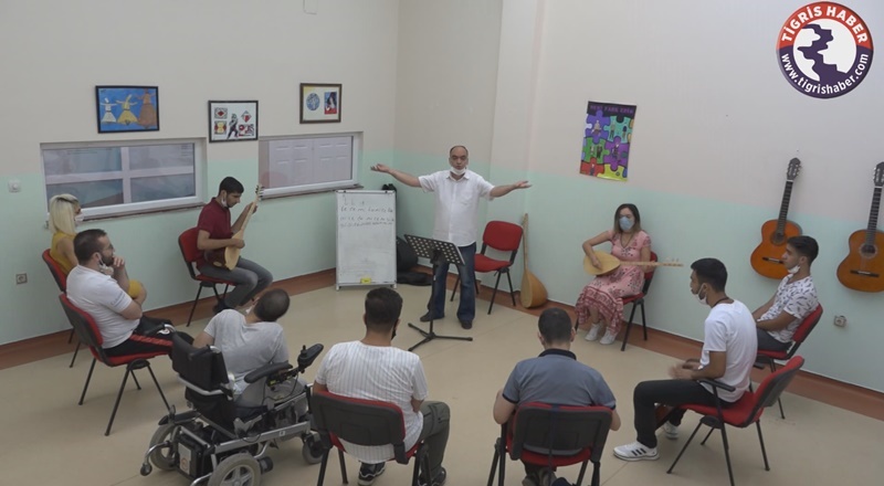 TİGRİS HABER - Diyarbakır Büyükşehir bünyesinde bulunan Sosyal Hizmetler Daire Başkanlığına bağlı Engelli Şubesi’nin çabaları ile kenttin en güzel korosu oluşturuldu. Sümerpark’ta bulunan Engelli Hizmetleri bölümünde kurulan koro sadece engellilerden oluşuyor. Kimisi görme, kimisi yürüme özürlü olmasına rağmen hayatlarını müziğe adamış olan bu insanların tek hedefi engelli olmalarına rağmen Diyarbakır’ı temsil etmek. Hayatları boyunca belki hiç göremeyecek ve hiç yürüyemeyecek olan toplumun eşit, onurlu ve vazgeçilmez insanları engelliler, söyledikleri türkü ve şarkılarla herkese deyim yerindeyse acının ne demek olduğunu hissettiriyor. Yaklaşık bir yıldır burada görev yapan Müzik Öğretmeni olan Halil Gümüş eşliğinde provalar yapan THM korosu ülkede ve bölgede ilk olma özelliğini taşıyor. Repertuar anlamına ilk konserini 3 Aralık’ta vermek için çalışmalarına hız veren koro 12 kişiden oluşurken, başvuru olması durumunda sayının artırılması düşünülüyor.