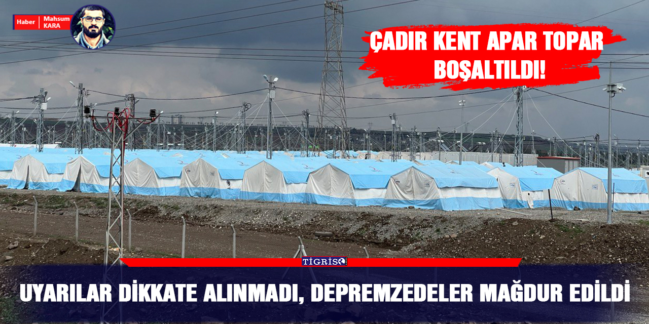 TİGRİS HABER -Diyarbakır’da etkili olan sağanak yağış sonrasında Silvan Yolu üzerinde Dicle Nehri kıyısında depremzedeler için kurulan çadır kent, su baskını ve barajlardaki su seviyesinin yükselme ihtimaline karşı dün akşam saatlerinde apar topar boşaltıldı. Çadır kent kurulduğunda Diyarbakır Kent Koruma ve Dayanışma Platformu, çadırların yanlış yere kurulduğuna dair daha önce açıklamalarda bulunarak yerin değiştirilmesi gerektiğine dikkat çekmişti.