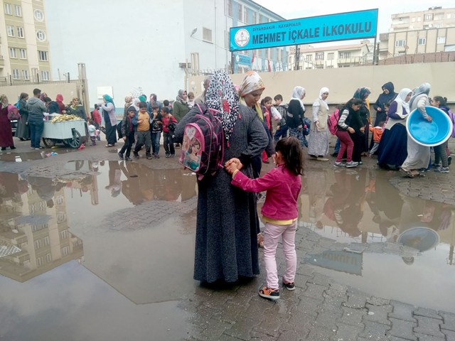 Önceki gün yağan yağmurda okulun önündeki yoldaki çukurluklar su ile dolarken, öğrenciler ve çocuklarını almaya gelen veliler zor anlar yaşadılar. Kimi aileler çocuklarını kucaklarına almak zorunda kalırken, su birikintileri arasında telaşla yollarına hızlıca devam ettiler. Bir ilköğretim öğrencisinin okuldan çıkarken su birikintileri arasında ıslanmadan geçmeye çalışması eğitimin bir parçası mıdır bilinmez ama bu durumun bir özel okul önünde ya da gelir düzeyi yüksek ailelerin çocuklarının eğitim gördükleri okulların önünde yaşanmayacağı su götürmez bir gerçektir. Dar gelirli ailelerin çocuklarının okuduğu okullarda bu tür sorunlar yaşanması ve gündeme getirilmesi halinde dahi yetkililerin herhangi bir şekilde bir çözüm bulmak için kılını kıpırdatmamasının izahını toplumun vicdanına havale etmekten başka yol bırakmıyor.