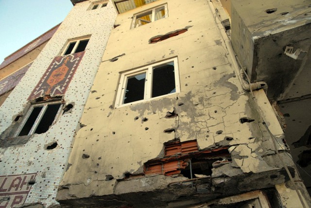 Yaklaşık iki ay süren yoğun çatışmaların izleri kent genelinde yansırken, hemen her ev, sıkılan kurşun ve atılan bombalardan etkilenmiş durumda.